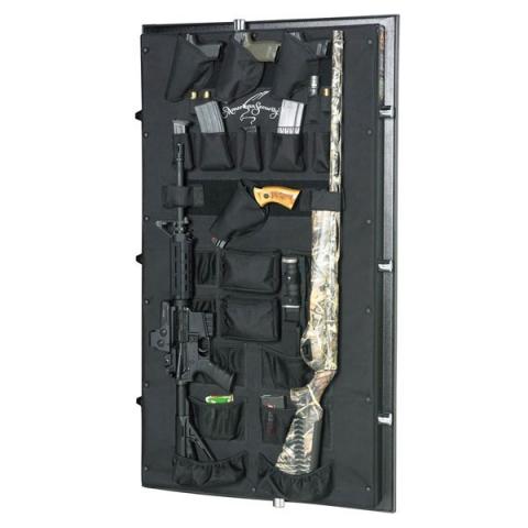 A long gun storage system that accommodates two guns. Includes the AMSEC exclusive “no hassle” quick release band.