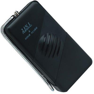 The Dual Purpose 120db Alarm can be hung on any door knob (non-metallic) and it will instantly and automatically sound when an intruder touches the door knob. It may also be carried as a personal alarm that is activated when you simply pull out the metal chain to sound the alarm which will deter any assailant set on causing you harm. The unit requires one 9V battery.