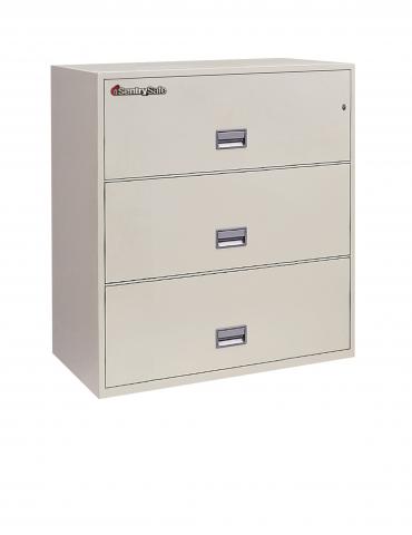 The SentrySafe 3-Drawer Lateral Fire File provides filing for letter and legal size documents.  Rated and verified by third-party industry testing services, this lateral file is designed to protect contents against loss resulting from fire, and explosion due to a sudden temperature change.