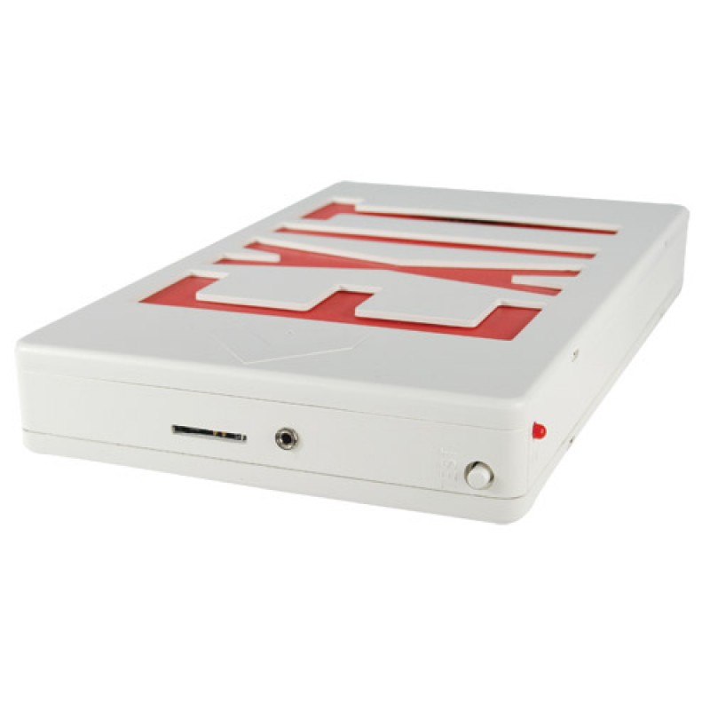 No one will ever be able to tell that this normal looking exit sign actually conceals a hidden color camera and mini DVR with an SD card to record everything that the camera sees. The exit sign plugs into the wall to power the exit sign, DVR and the camera.